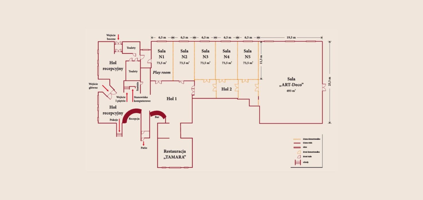 Profesjonalne zaplecze konferencyjne – nasze sale konferencyjne są w pełni wyposażone w nowoczesny sprzęt multimedialny, co pozwala na organizację spotkań na najwyższym poziomie. Dostosujemy przestrzeń do charakteru Twojego wydarzenia, zapewniając komfort i efektywność każdej prezentacji czy warsztatu. Największa sala konferencyjna - sala Art Deco - pozwala na organizację konferencji dla 500 osób.